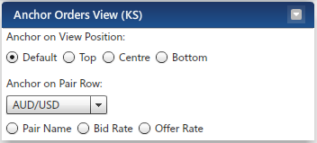 When orders are changing position in the data model, the screen can jump around as the row at the top of the grid is moved. This panels lets you select the on-screen row that should be anchored when rates change.