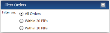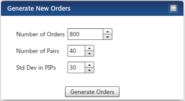 This panel lets you generate different sets of orders, changing the quantity of orders, the number of Currency Pairs the orders are for, and the Standard Deviation of the orders from the default application market price.