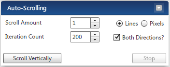 By default, it will scroll down a single line 200 times, then back up, but you can change both the number or lines scrolled each frame, the total number of scroll operations to carry out, and whether you want to it be bi-directional.